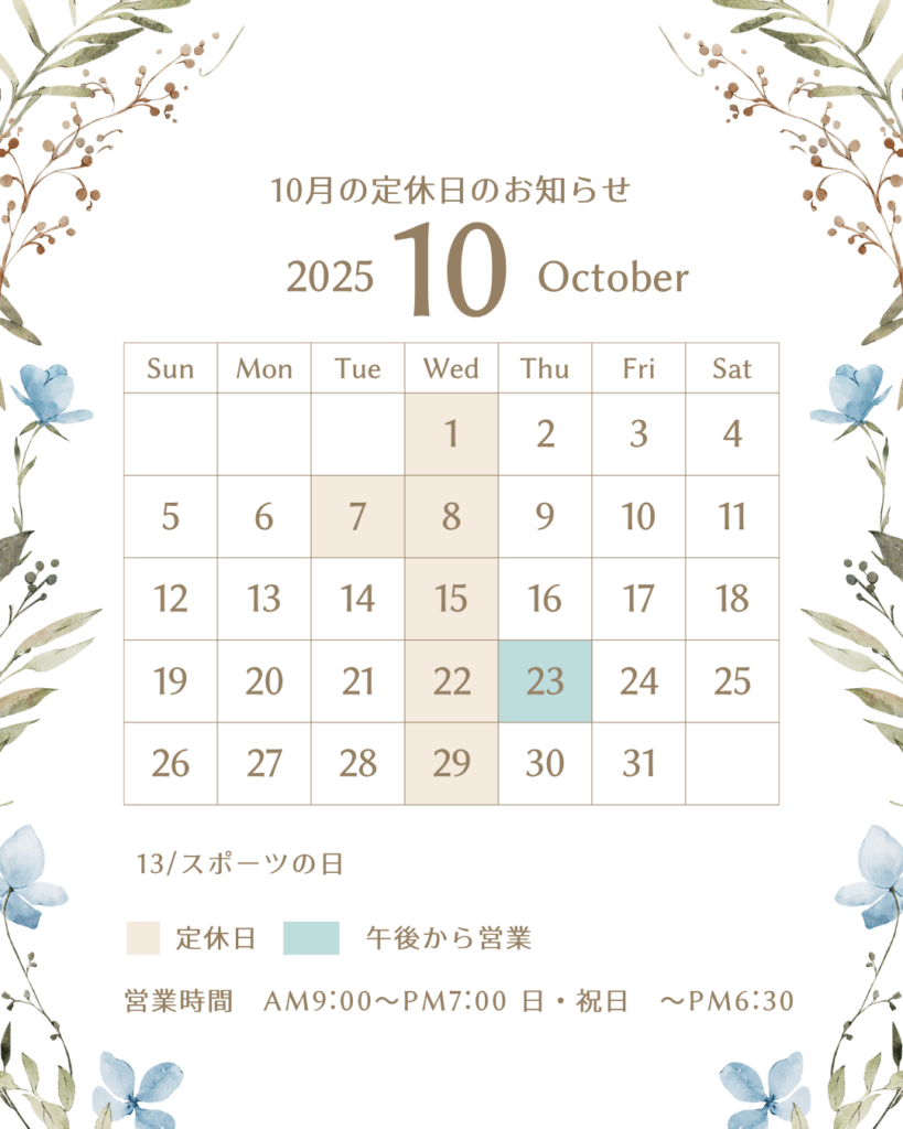10月のお休みについて。