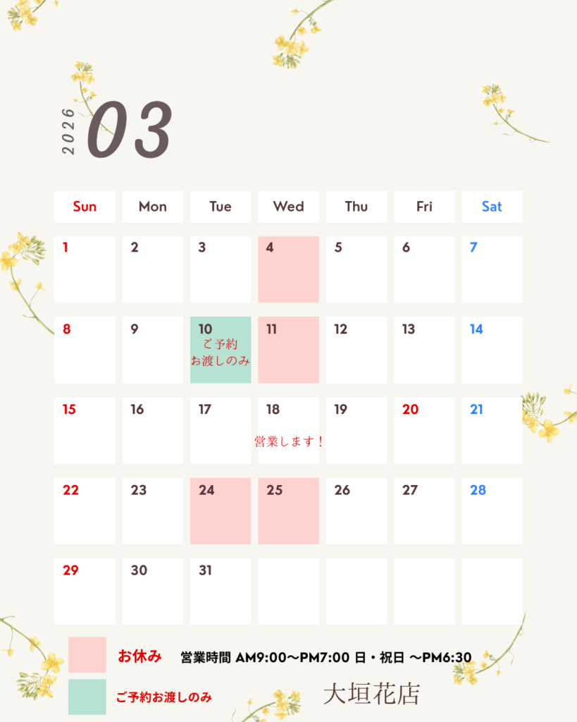 【重要】3月はご注文が立て込む時期になるので、当日お渡しのご注文をお受けできない日が多くなります。